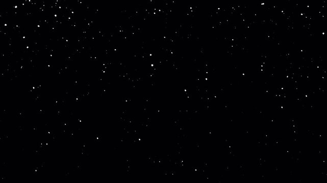 Looping slow falling snow on transparent background. Soft white particles drifting downward in a peaceful winter atmosphere, ideal for overlays and motion design.