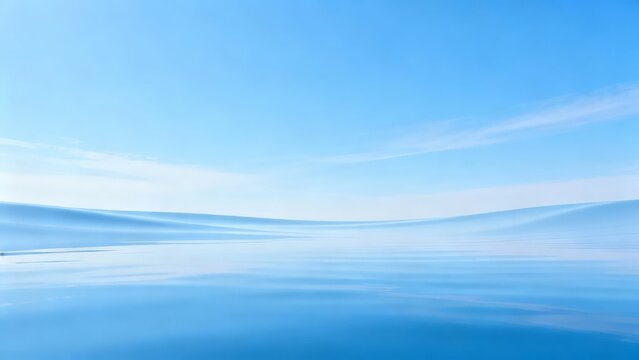Serene blue sky meeting calm water surface with soft horizon line