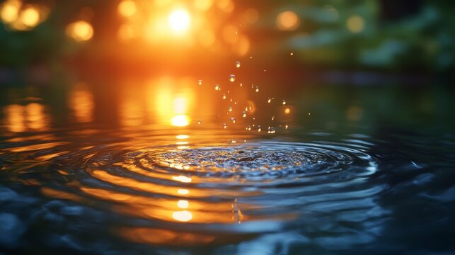 Gentle ripples on a softly lit golden water surface, peaceful backdrop for wellness, beauty, and health promotions