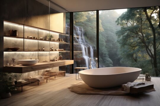Relaxing day spa with wavy wall and candles for wellness and healthcare