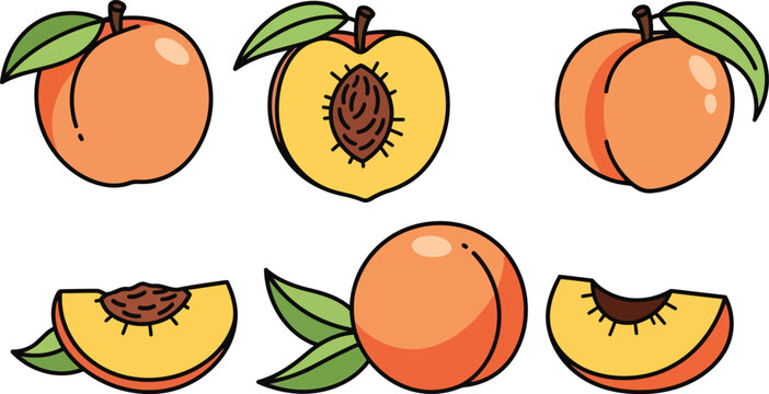 Peaches isolated set. Collection of sliced peaches on a transparent background