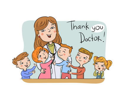 Pediatric Appointment Card With Smiling Doctors And Young Patients Templates