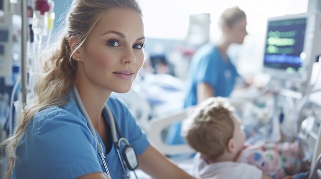 Pediatric critical care nurse a pediatric ICU monitoring a child with a critical condition