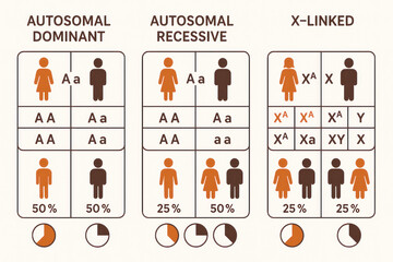 Genetics Inheritance Chart Illustrating Autosomal Dominant, Recessive, and X-Linked Traits - Illustration