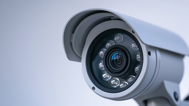 A sleek white surveillance camera peers out, its lens ringed with infrared LEDs, ready to monitor every moment under its vigilant gaze.