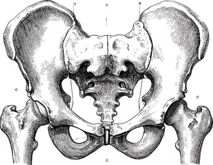 Pelvic bone anatomy, illustrated blossom  bony pelvis. Hand-drawn vector illustration for your unusual design.