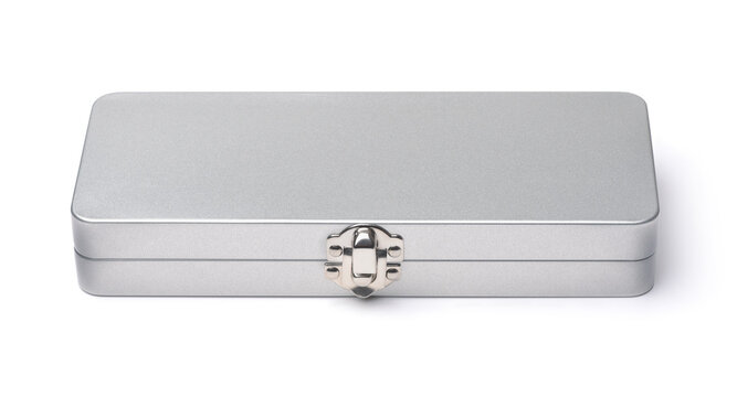 3D rendering of a rectangle blank silver box for pencil or stationery isolated on a white background