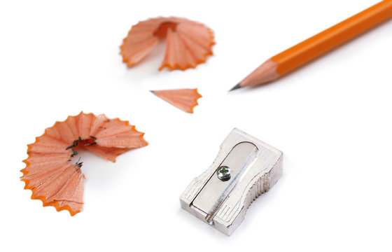 Pencil and pencil shavings, isolated on white