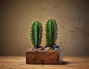 Epoxy resin pendant with preserved cactus plant on wooden base,  jewelry,  nature-inspired,  minimalist