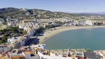 Panorama of coastline and beach at Peniscola. Castellon, Spain
