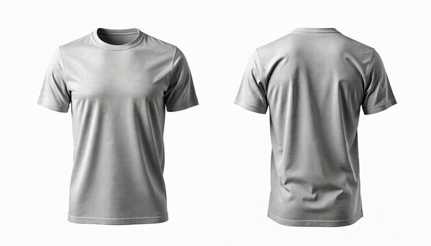 Front and back view of a blank grey t shirt. Mockup for apparel branding and design. Template perfect for presentations or online stores to showcase designs with space.