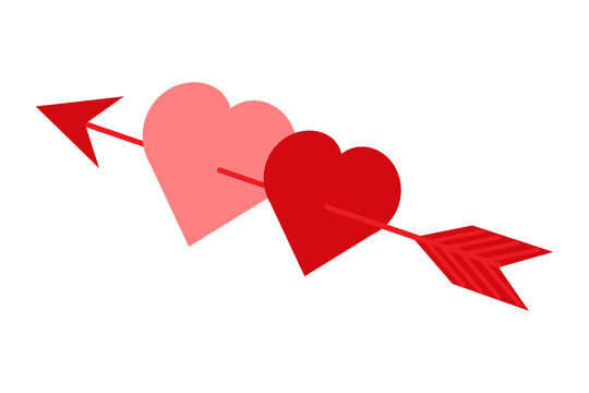 Two intertwined hearts pierced by a red, burgundy arrow, symbolizing love and romance. Minimal vector illustration perfect for Valentine’s Day, weddings, and romantic designs. Transparent PNG