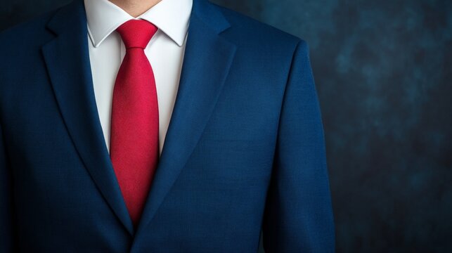 Navy Suit Red Tie: A close-up shot of a man's navy blue suit and a vibrant red tie, exuding confidence, style, and professionalism. The image is perfect for showcasing business attire.