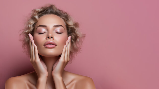 Beauty portrait of young Asian man with genderless makeup. Cosmetics and skin care concept.