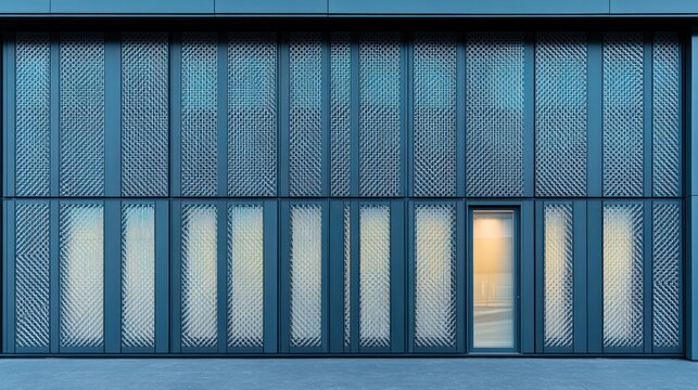 Modern building facade with dark panels and perforated metal