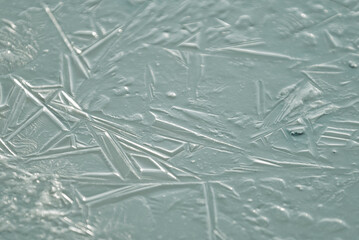 Glacier high in the mountains. A high layer of ice permafrost on a mountain peak.