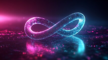 A glowing infinity loop graph symbolizing perpetual trade, illuminated with neon gradients of teal and purple, smooth curves forming a dynamic flow, glowing data points along the loop,
