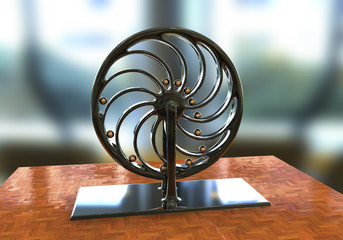 Perpetual motion machine, Perpetuum mobile, 3D illustration. 3D model is accurately made according to drawings of Leonardo da Vinci