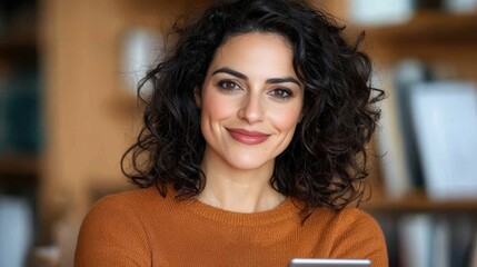 Woman smiling in office setting.