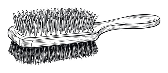 Detailed vintage style hairbrush engraving featuring dual bristled design, perfect for beauty and personal care industry branding or barbershop promotional materials