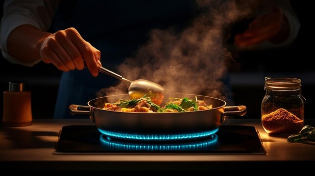 Professional Chef Cooking in Modern Kitchen. Generative AI