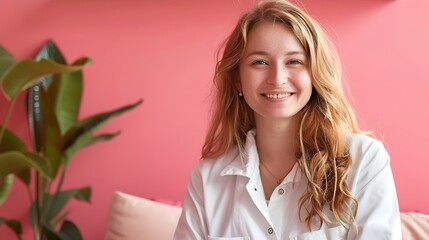 Cheerful Young Therapist Exuding Empathy and Guidance in a Vibrant Session