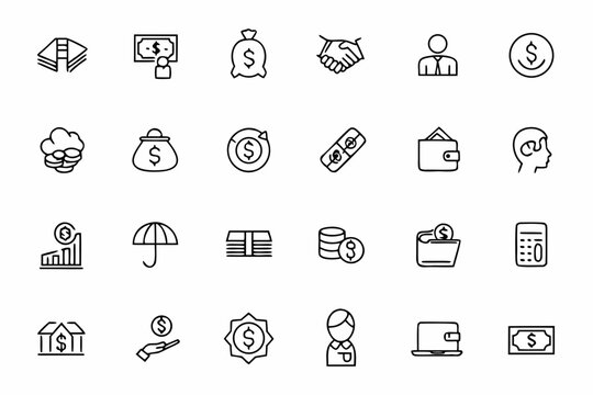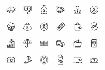 A clean and informative collection of minimalist line art icons focused on personal loans and financial planning. Perfect for banks, loan apps, money management blogs, and printable finance tools