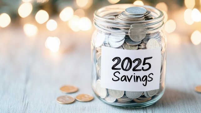 Saving for the future 2025 savings jar home setting financial planning cozy atmosphere close-up view personal finance tips