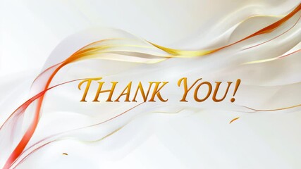 Thank you animated poster with golden text on white background, featuring wavy golden lines. gratitude in business, event invitations and personal thank you notes