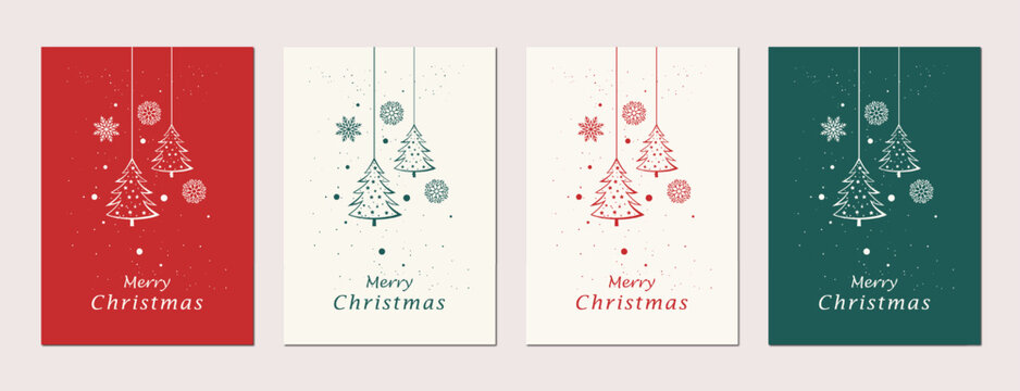 Minimalist Merry Christmas Greeting cards for business and personal use. Colorful modern minimalist vector for greeting card, website banner, social media Christmas card