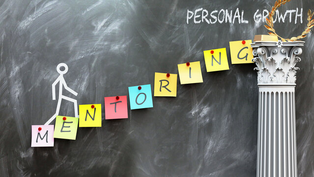 Mentoring growing specialists. Leader help growth team employee, steps mentorship business company, hr specialist grow professional integrity trust leadership vector illustration