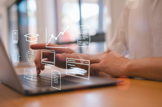 Professional Selecting Coaching Service on Interactive Virtual Screen Interface with Various Business Icons