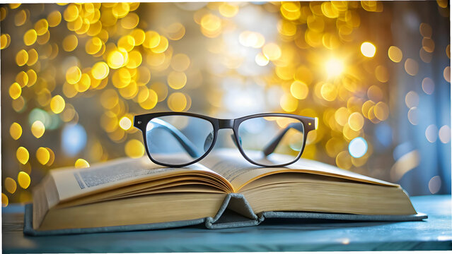 Floating First Book and Reading Glasses on Soft Bokeh Background Symbolizing Self Education and Personal Milestones