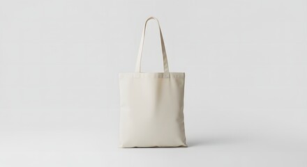 Minimalist white fabric shopping bag hanging on a hook, providing a blank space concept for custom logo or text