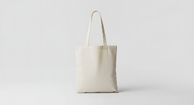 Blank off-white canvas tote bag with handles isolated on a white background. Eco-friendly reusable shopping bag mockup for design.