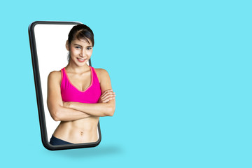 Fitness promotion with confident trainer highlighting gym benefits