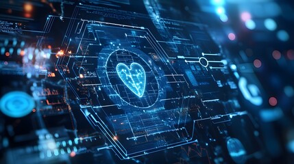 Futuristic digital interface with user data displayed, showcasing technology, innovation, and biometric identification in a corporate environment