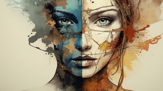 Mood disorder. Split personality. Bipolar disorder mind mental. Dual personality concept.