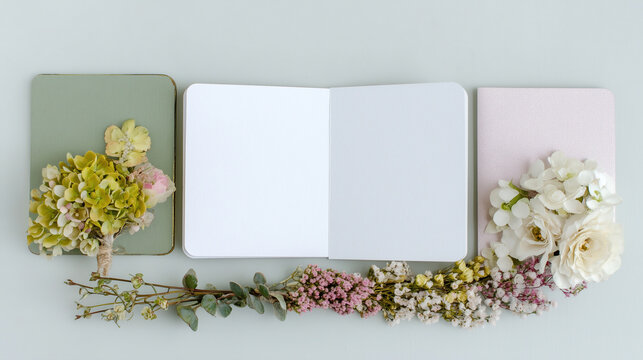Elegant wedding card mockup featuring a delicate arrangement of flowers on a soft background with a blank space for personalization