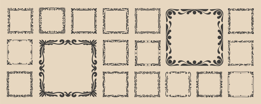 Vintage Ornament Frames collection. Elegant Decorative Square Border for Wedding Invitation and Scrapbooking design