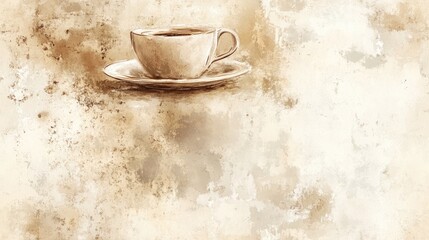 Watercolour card design featuring a coffee cup illustration on a sepia toned textured background ideal for personalized invitations or greeting cards