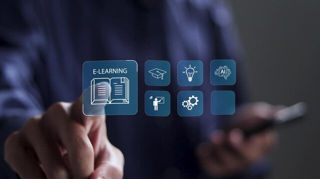 Online education technology concept, E-learning education, internet lessons and online webinar, AI-enhanced learning with personalized courses.