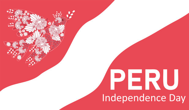 Anniversary banner Independence Day of Peru. Peace dove made of flowers. Vector illustration