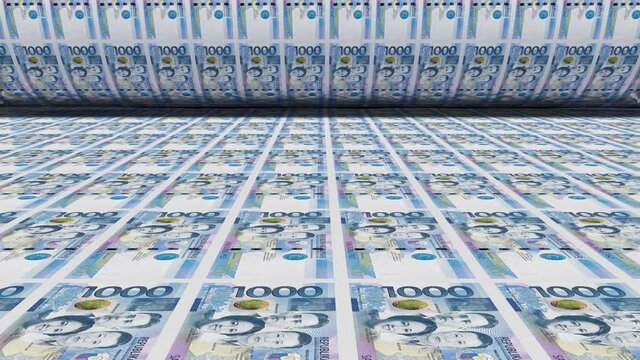 Inflation. Philippine peso banknotes or bills, PHP currency cash in Philippines. Stack of money printing machine. Paper process in central bank.Economic, finance. Laundering.Exchange. 3d illustration.