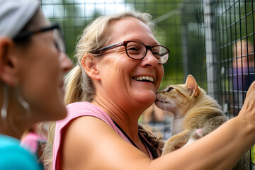 Pet adoption event capturing the moment when a rescued animal finds its forever home, highlighting the life-changing impact of pet companionship. Generative AI