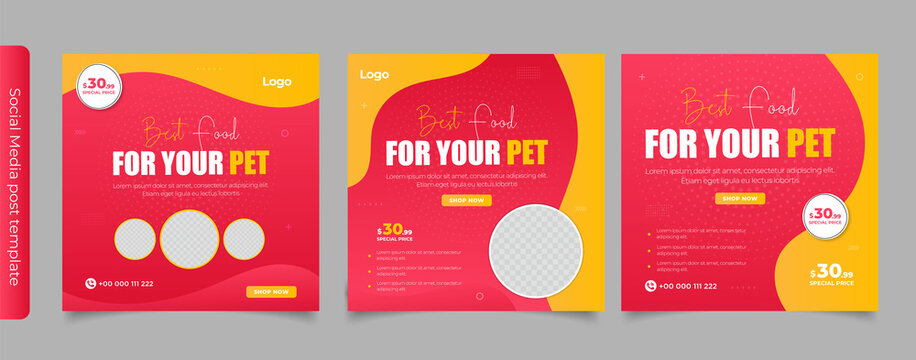 Pet Shop and Pet Care Social Media Post for Online Marketing Promotion Banner, Story and Web Internet Ads Flyer