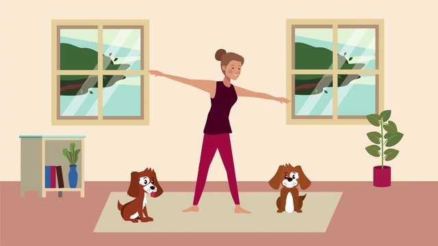 Yoga woman cartoon on window shadowed white background healthy lifestyle campaign remixed media