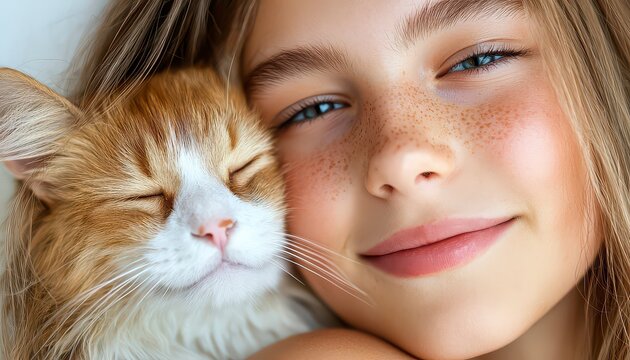 Compassionate veterinarian examines cute kitten for pet care promotion