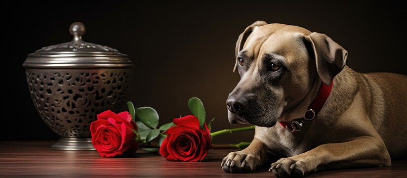 Artistic Representation of Pet Loss and Grief in a Serene Natural Setting with a Golden Retriever. Concept Pet Loss, Grief, Serene Setting, Golden Retriever, Artistic Representation