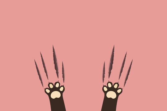 Two cute cat paws with scratch marks on a soft pink background, perfect for cat lovers